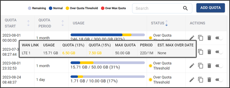 Quota Usage Detail - WAN or Traffic Policy Assignment / Interface disablement