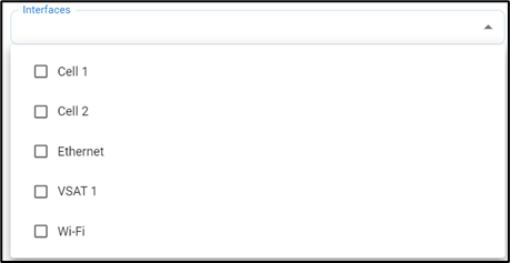In the Interfaces field, select the required Interfaces from the dropdown menu. The Interface list in the dropdown will be shown according to the selected device.