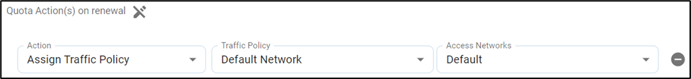 Using the Add Actions feature, different configurations can be applied to the quota when the user reaches different percentages of data usage. When the quota refreshes, the user might want to restore the initial configurations and start as new. The Quota Actions on renewal option can be used for that purpose.