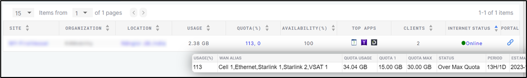 Usage % – Percentage of data consumed from the total Quota.