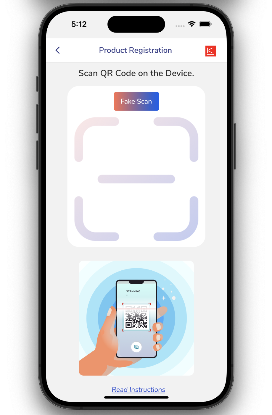 Scan the QR code provided on the device. Click the Read Instructions button to view the required steps.