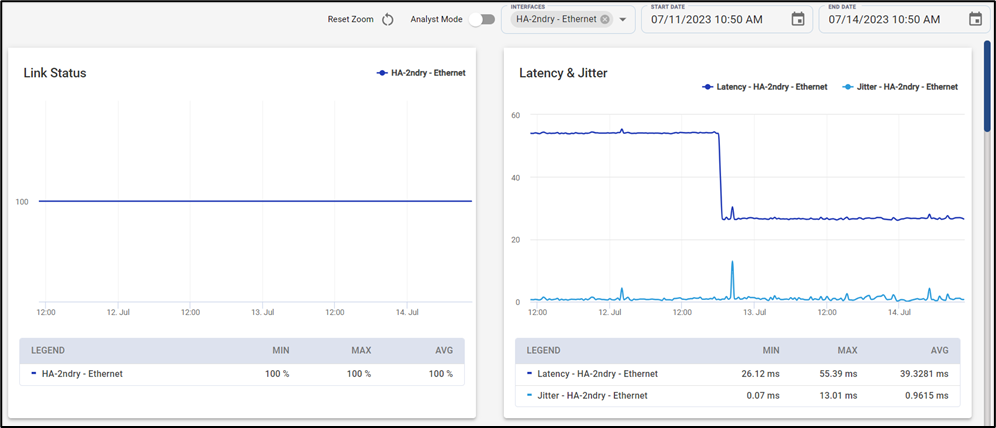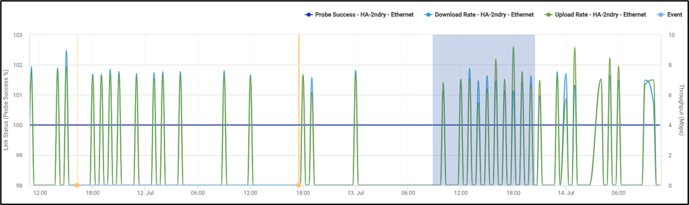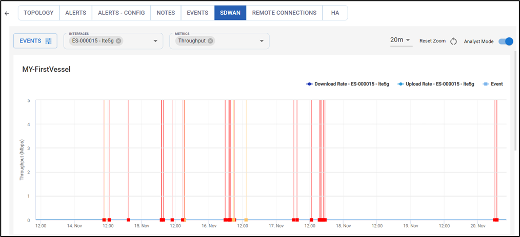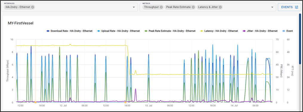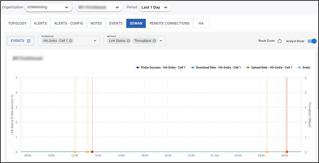 Along with the metrics, the chart also plots the Events happening in the WAN interfaces.