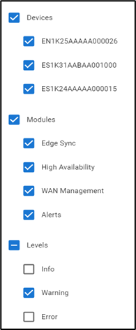 Select the checkboxes of the devices for which the user wants to record the events.