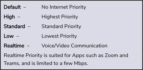 | Internet Priority - To view the details of the internet priority, point the mouse to i icon. And, In the Internet Priority list, click the internet priority. |