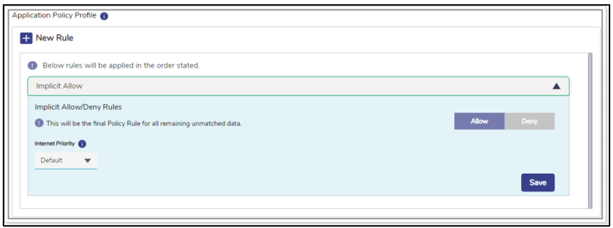 | After configuring the implicit allow or deny rule, click Save. |