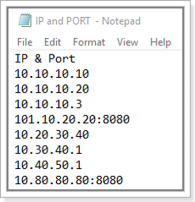 Where, x is a subnet, and its value can be from 0 (zero) to 32. y and z are port numbers, and its value can be from 0 (zero) to 65535. a/b/c/d are IP, and its value can be from 0 (zero) to 255. User can enter multiple IP and ports.
