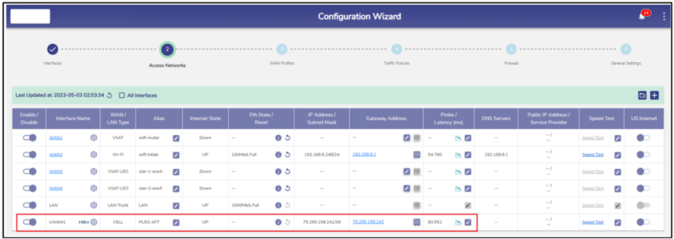 Click on the Toggle icon and disable the UWAN1 Interface.