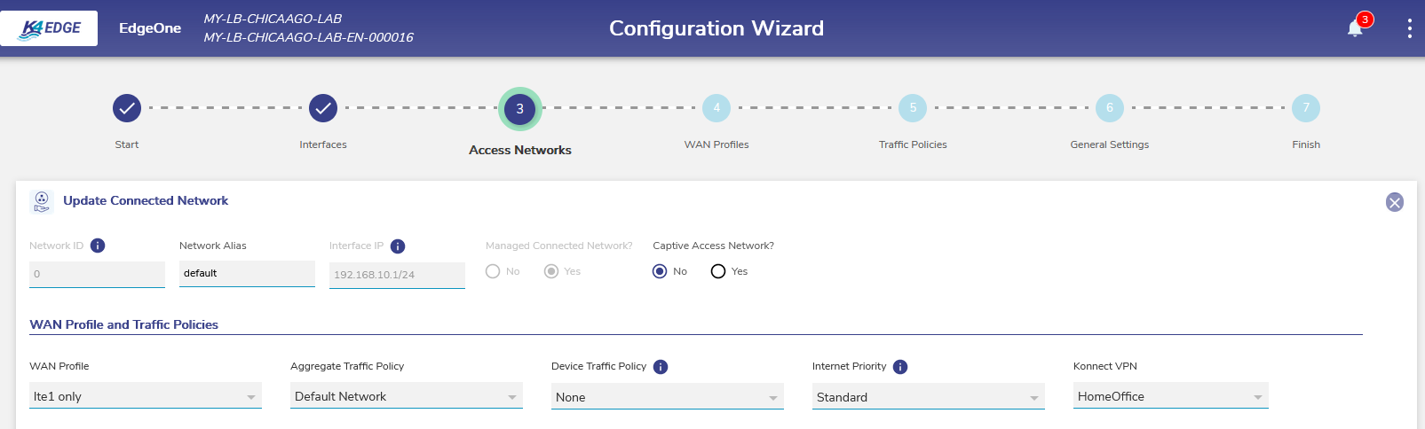 Enabling Access Network at Edge to route traffic over Konnect VPN