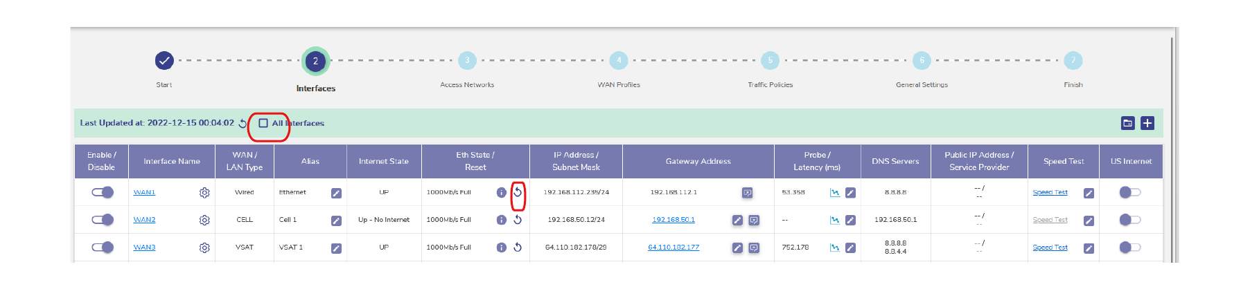 By default, only the WAN/LAN/Management interfaces which are enabled/configured will show up in this table. If the user wants to show all the available interfaces, then need to enable the same at the top of the Table “All Interfaces”