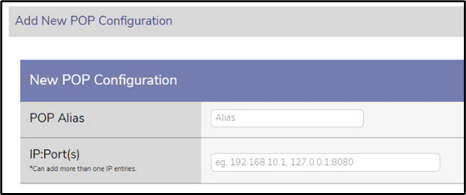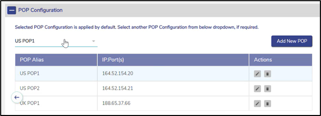 The user can select the required POP Configuration and also add new POP Configurations if needed.