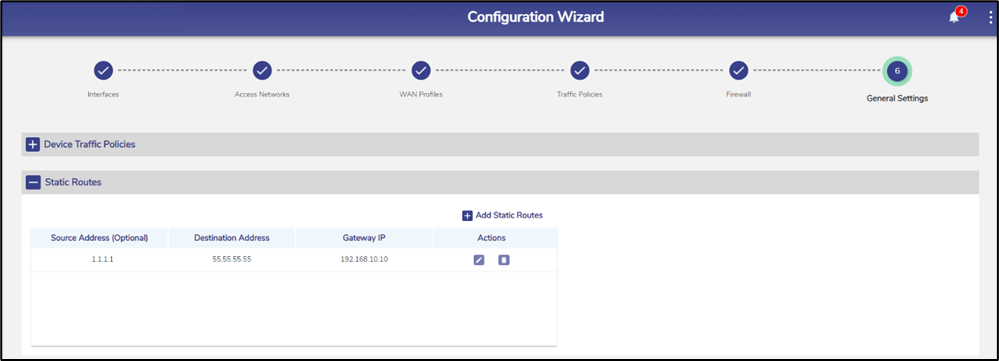 Gateway IP | Enter the IP address of the router to which the traffic is to be routed. This indicates that the traffic with a source IP address and a destination IP will be routed to the router with an IP address specified in the Gateway IP field. This is an example. Source Address (Optional) 92.168.10.5/24 Destination Address 192.168.10.5/24 Gateway IP 192.168.10.1 The traffic with a source IP address/subnet mask 92.168.10.5/24 and a destination IP address/subnet mask 192.168.10.5/24 will be routed to a router with an IP address 192.168.10.1. |
