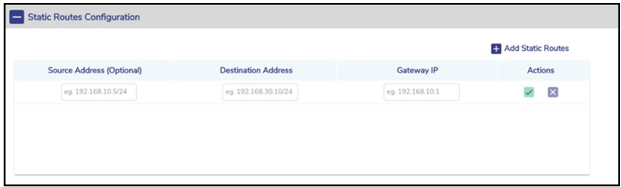 This section has routes that need to be configured to access any device that can be reached through a router connected to the LAN interface of the CommBox EdgeOS System. As part of configuration, we need to specify the subnet we want to reach, and the ‘gateway address’, which is the address of the router.