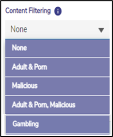 In the Content filtering field, select any option from the dropdown menu according to the user’s need.