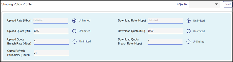 Under the Shaping Policy Profile section, enter the required Upload Rate in Mbps.