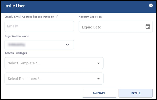Click Invite button to send the account registration invite to the user.