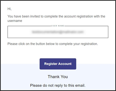 The user will receive the following registration invite email from Accounts.
