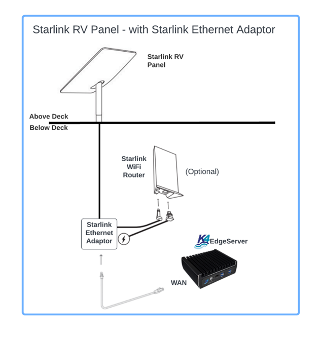 Additionally – it is required that a Starlink Ethernet Adaptor be used in place of the WiFi Router to simplify installation.