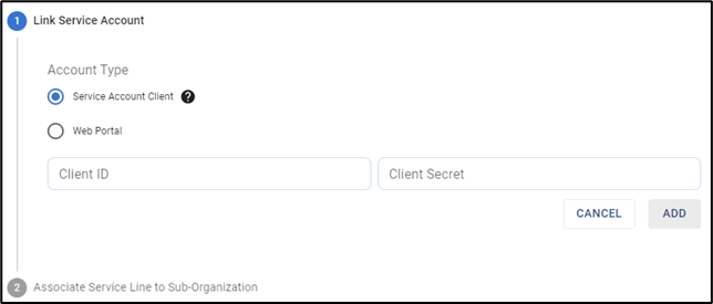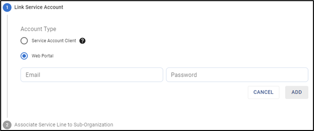 Add Service Account - Web Portal