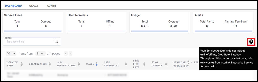 Service Account Client access is generally available to Starlink resellers to provide more complete metrics on terminal use, with data points on availability, latency, and throughput – among others. It requires API access to Starlink data through the internet, and the credentials must be added in CommBox Edge Cloud Portal during account registration.