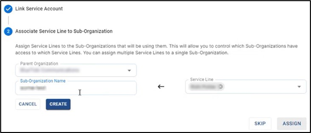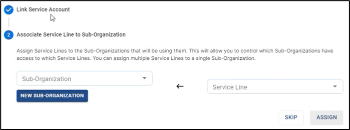 Click Assign to associate the Service Line with the selected Sub-Organization.