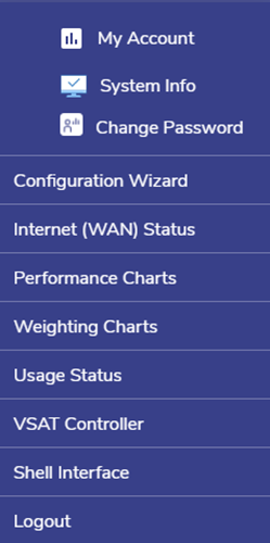 Note: By default, the CommBox Edge 2 menu will not show ‘Cellular Controller’ option. It will be shown in the menu only when a Peplink 5G or Ascent Modem is configured as a WAN source. The same is true for VSAT Controller, but currently CommBox Edge 2 has the main WAN port configured for Starlink. Therefore, the menu shows VSAT Controller option.